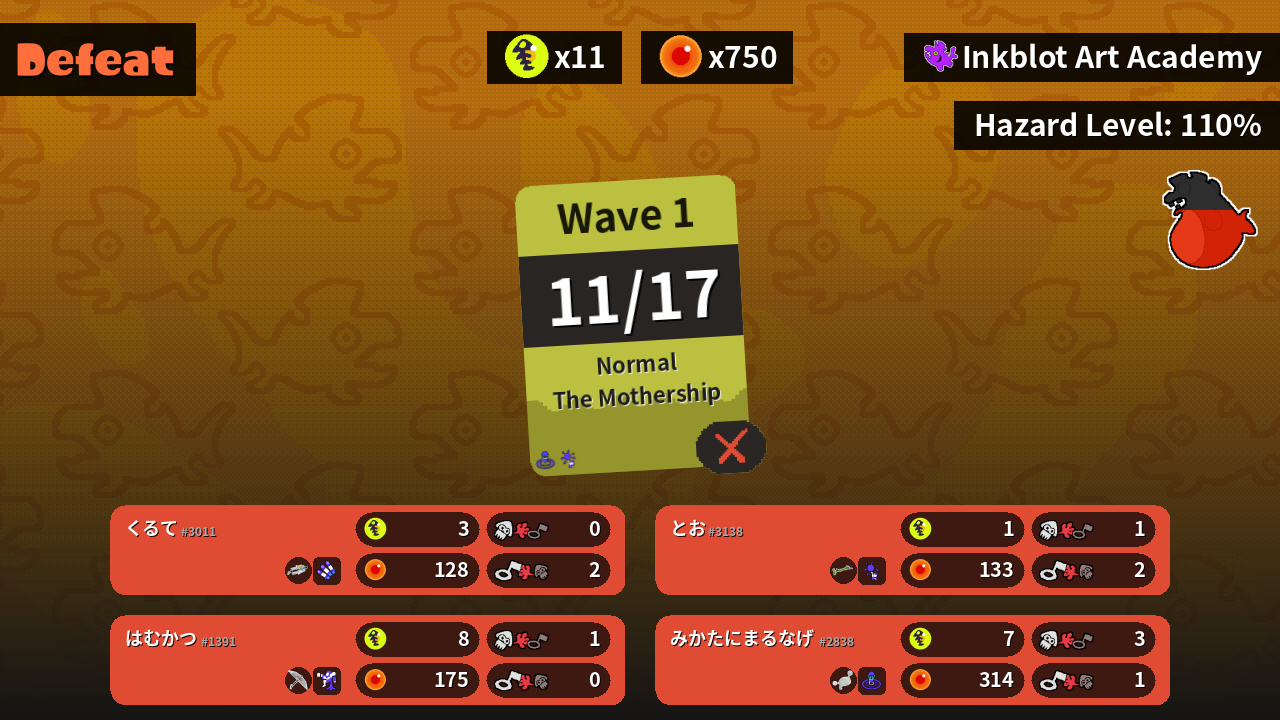 | Special | Triple Inkstrike (0) | Inkjet (0) | Wave Breaker (1) | Booyah Bomb (1) |