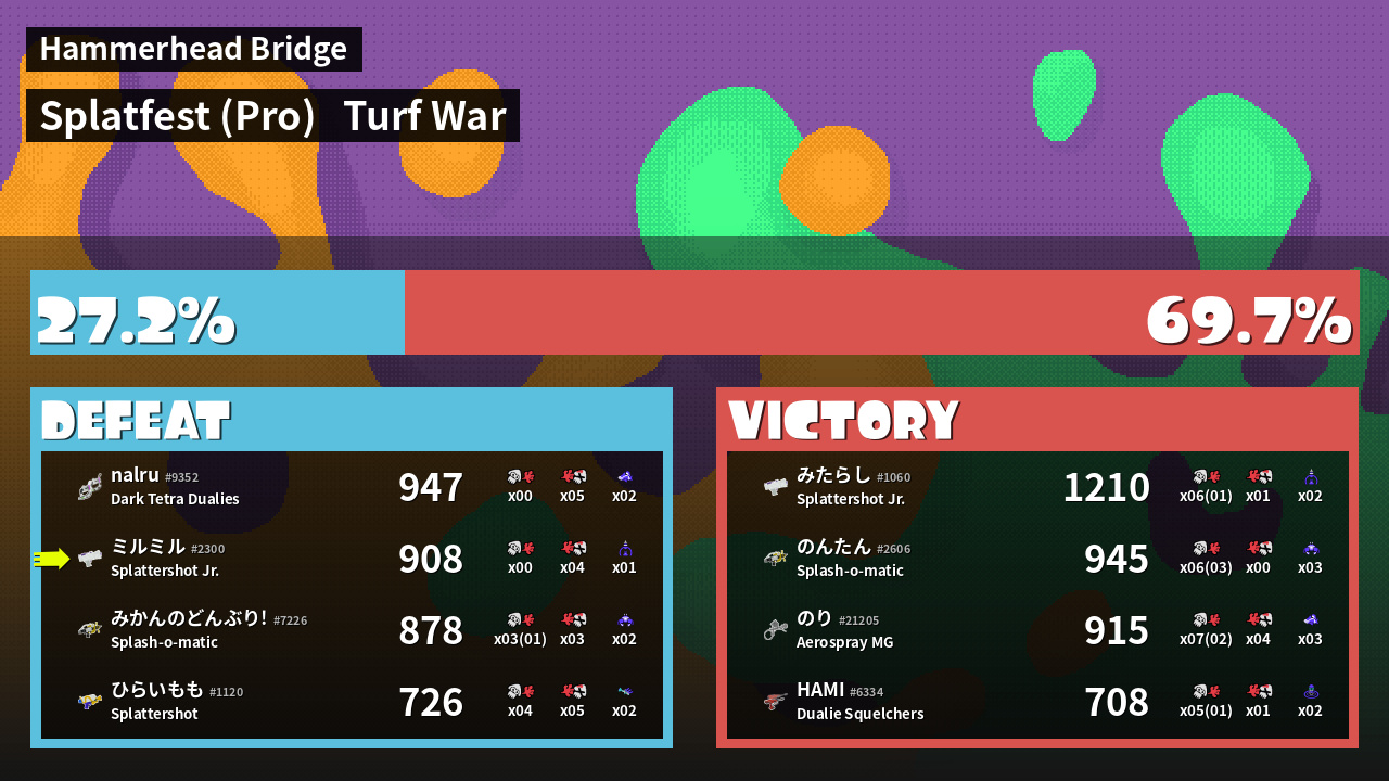 | Mode | Turf War - Splatfest (Pro) | ||