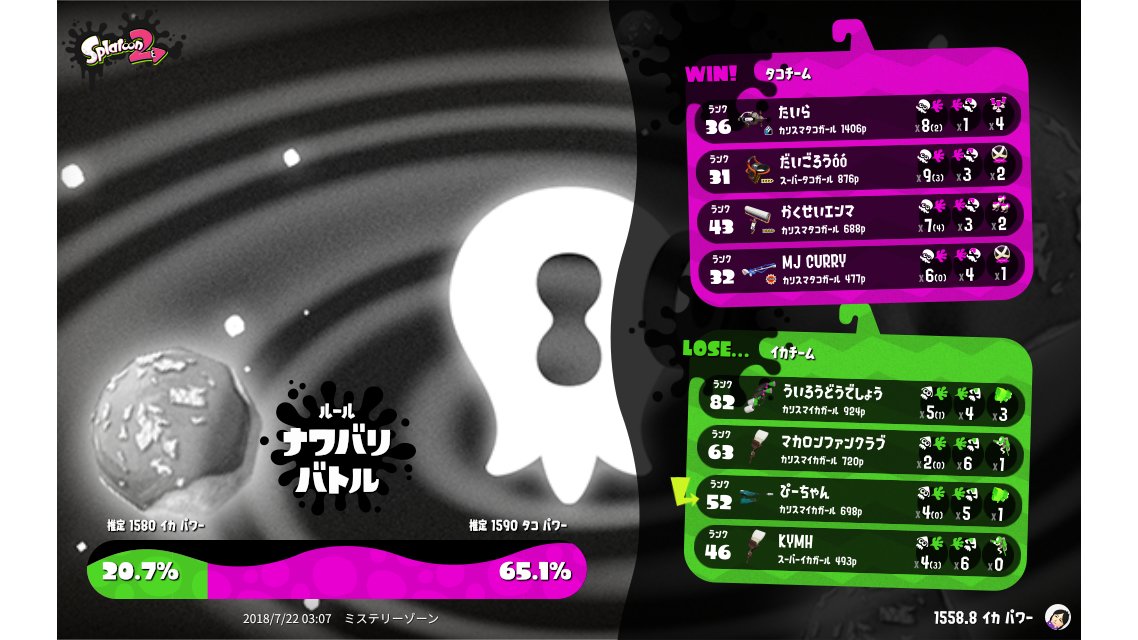 | Splatfest Power | 1,558.8 | ||||||||||||||||||||||||||||