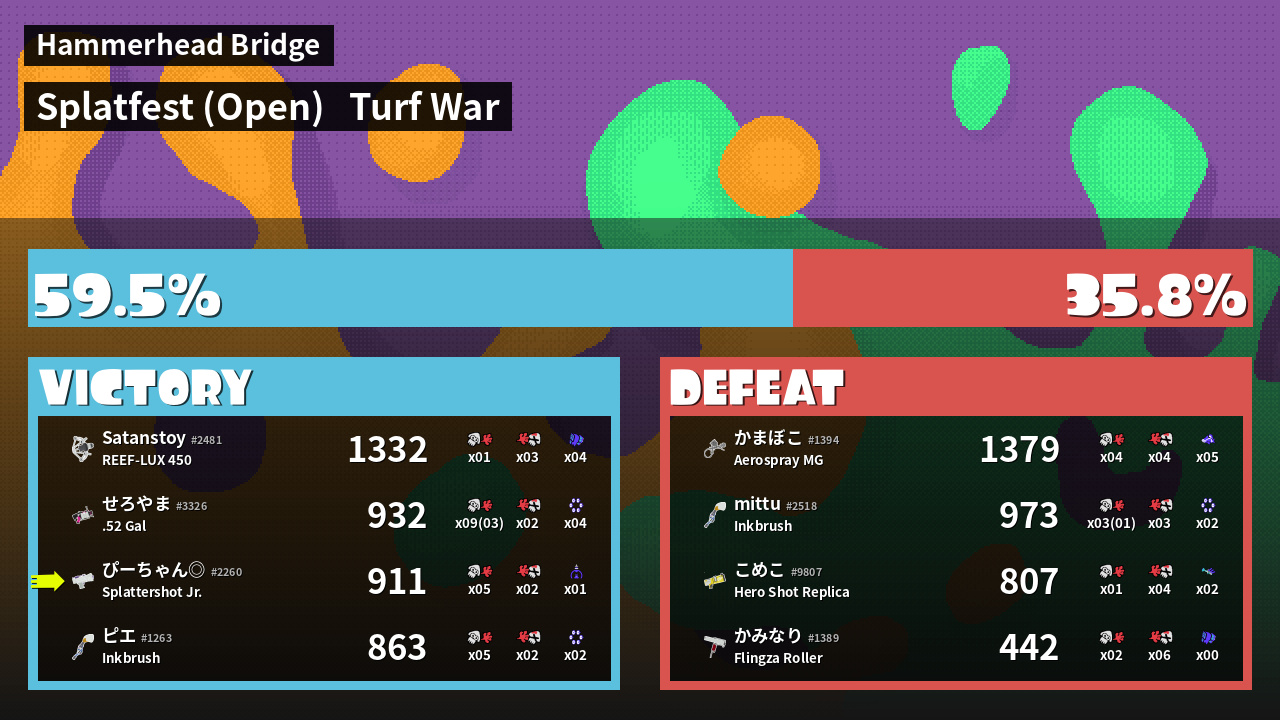 Kills / Deaths | 5 + 0 / 2 > Kill Ratio: 2.50 | ||