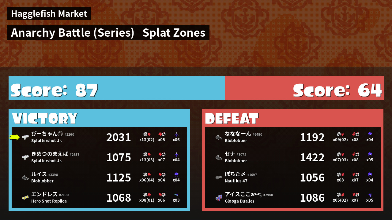 | Mode | Splat Zones - Anarchy Battle (Series) | ||