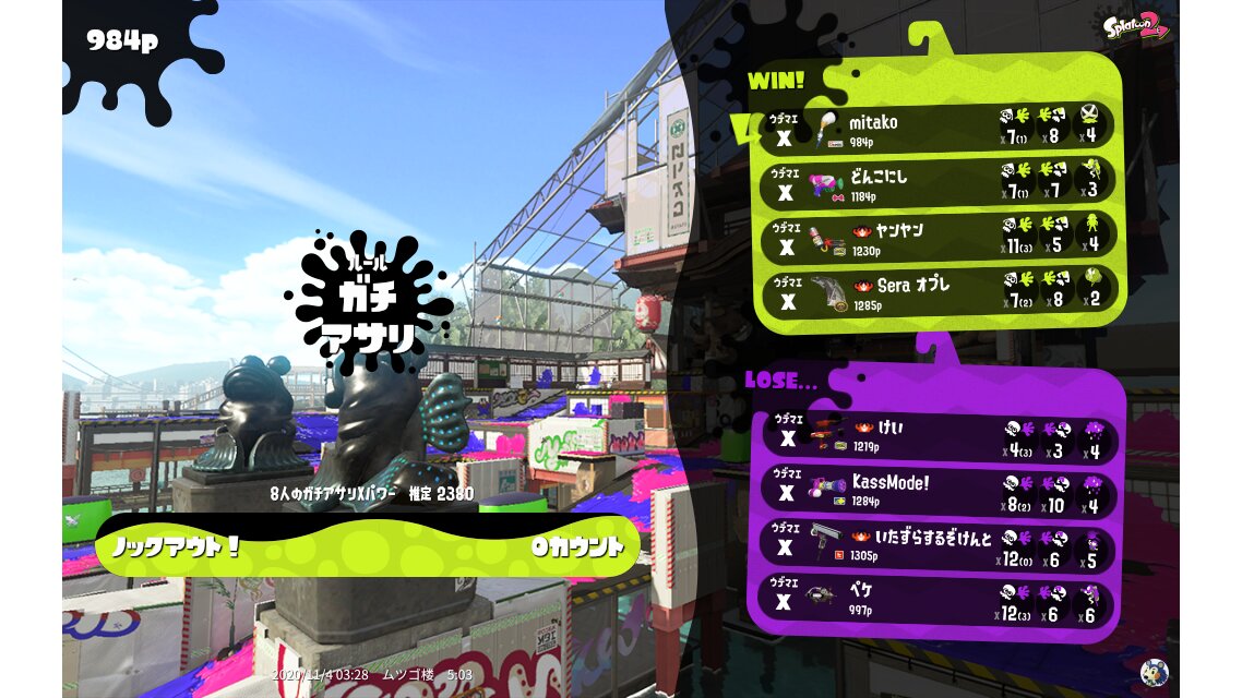 | Name | Weapon | Level | Rank | Inked | k+a/sp | k/d |