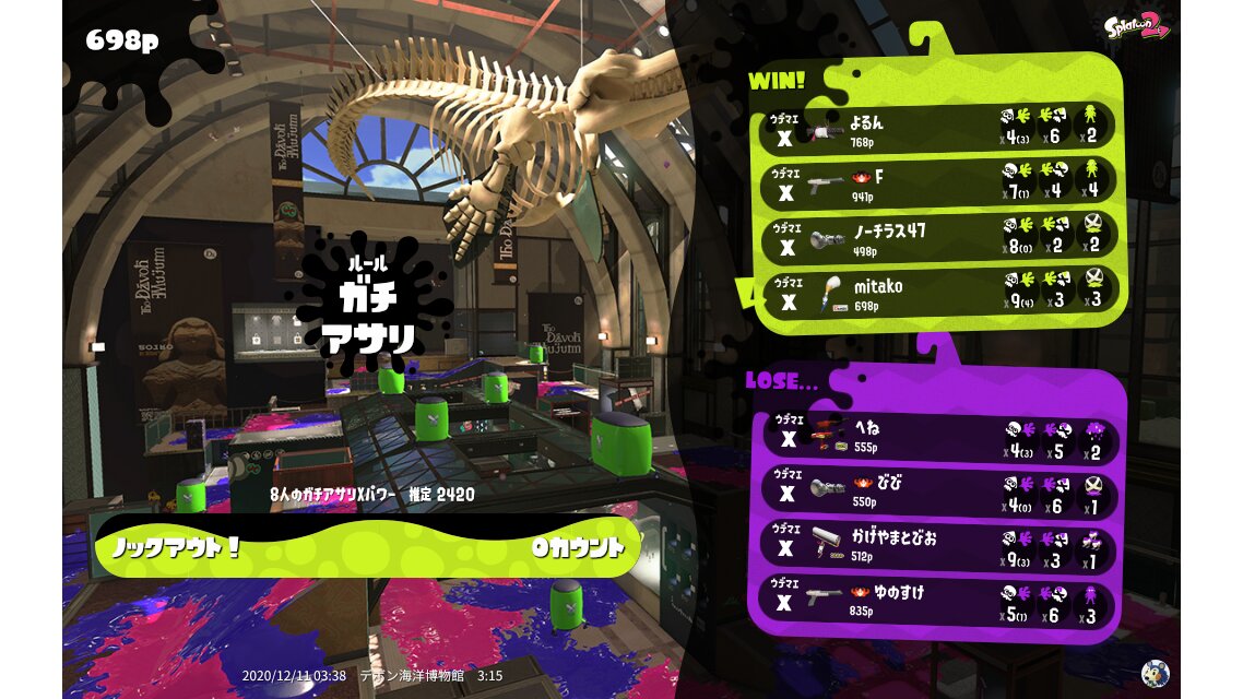| Name | Weapon | Level | Rank | Inked | k+a/sp | k/d |