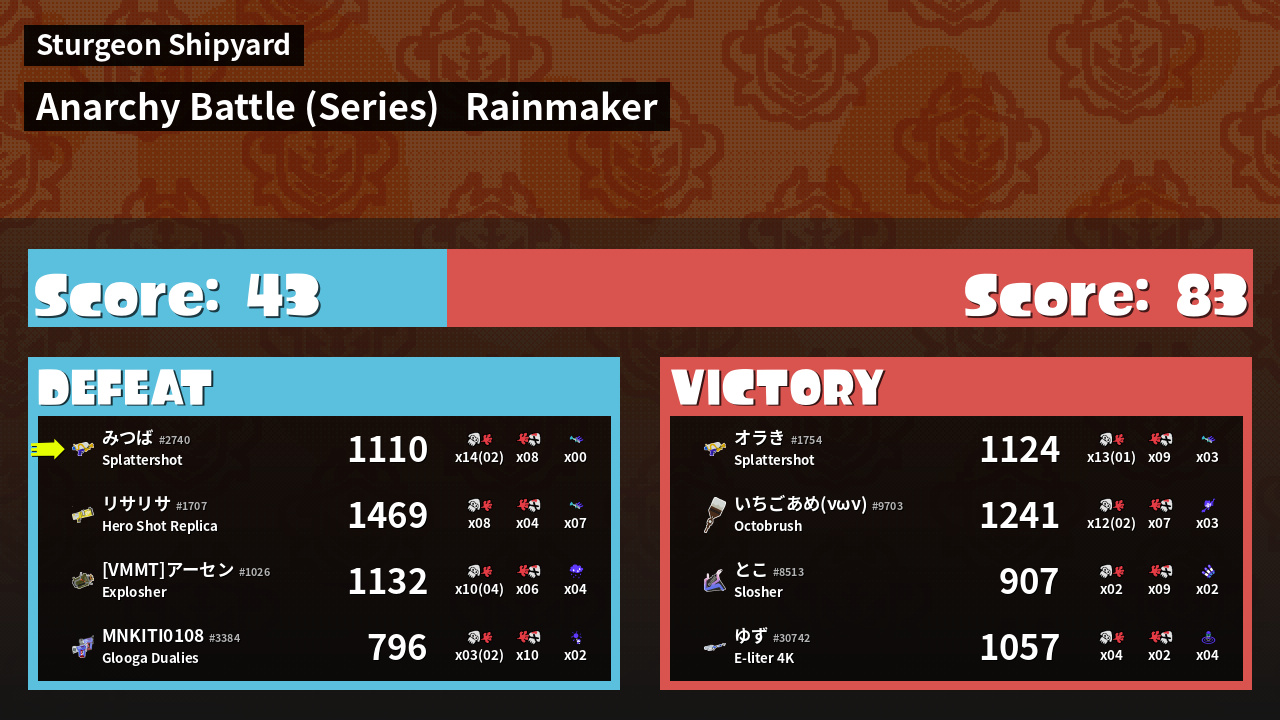 | Mode | Rainmaker - Anarchy Battle (Series) | ||