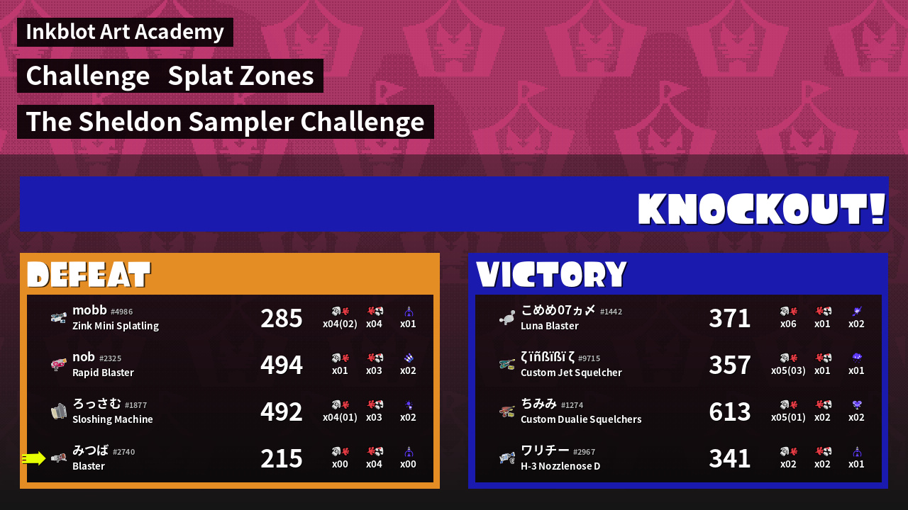 | Challenge | The Sheldon Sampler Challenge Make the most of random weapons! | ||