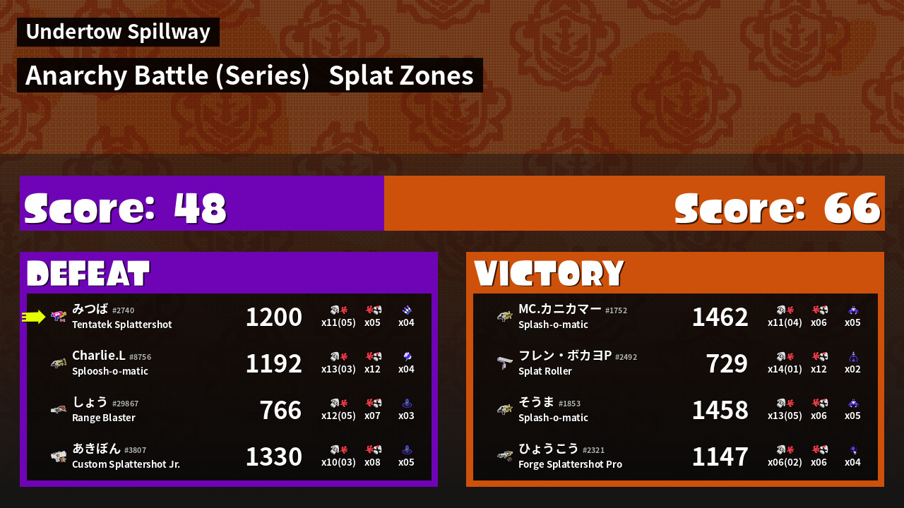 | Mode | Splat Zones - Anarchy Battle (Series) | ||