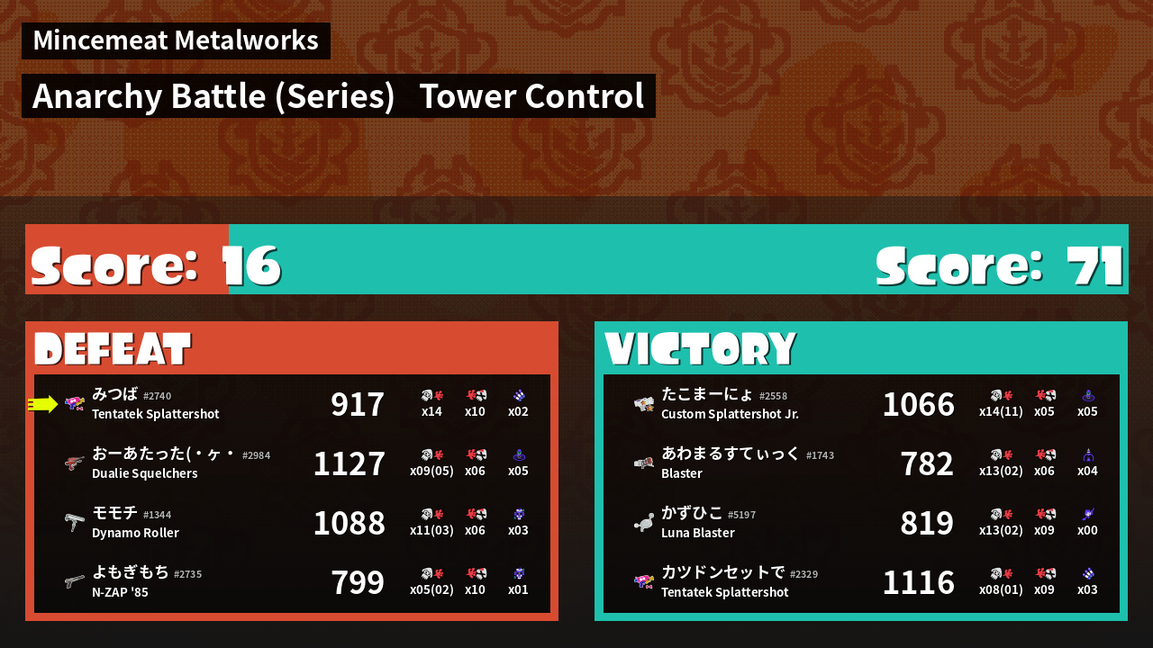Kills / Deaths | 14 + 0 / 10 > Kill Ratio: 1.40 | ||