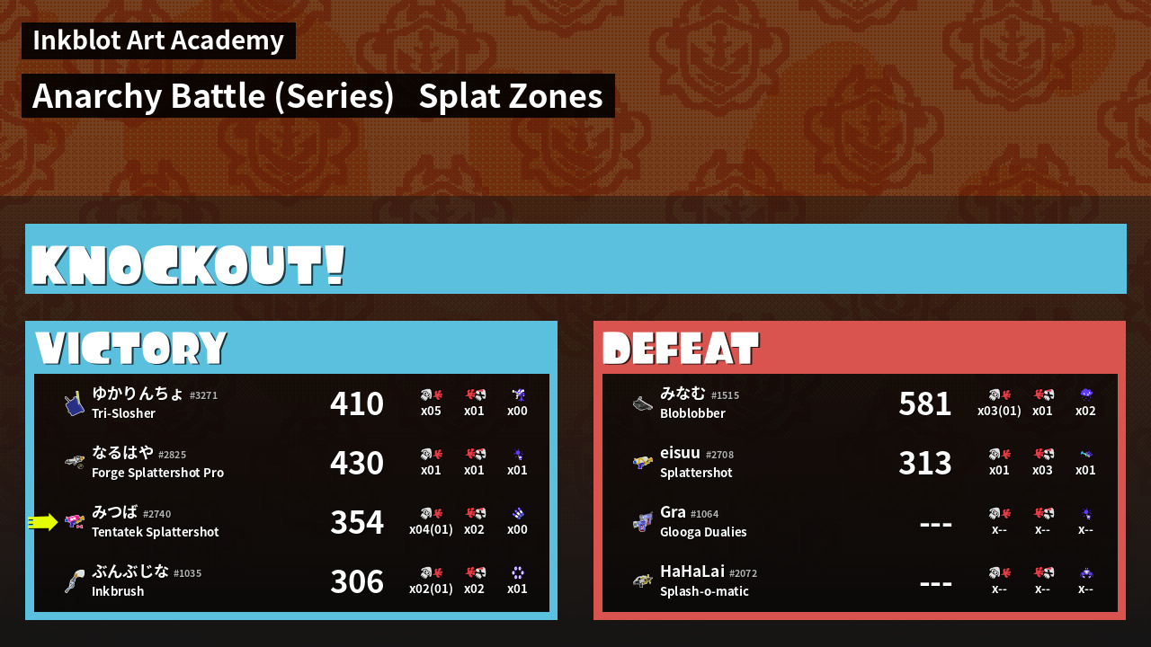 | Mode | Splat Zones - Anarchy Battle (Series) | ||