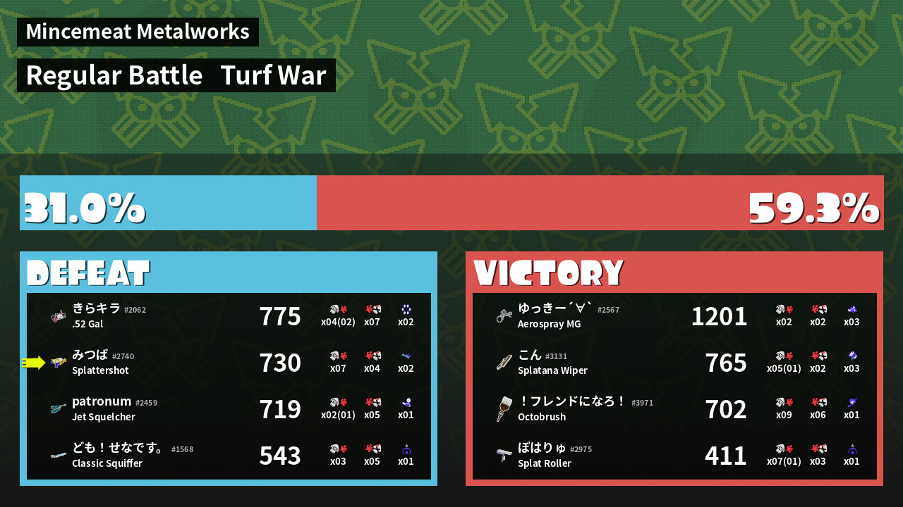 | Medals | #1 Overall Splatter #1 Home-Base Inker #1 Enemy Splatter | ||