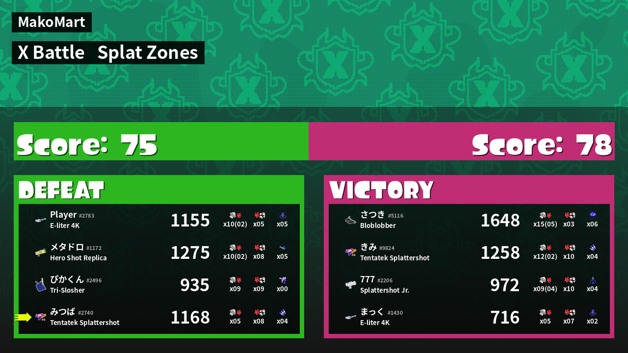 | Weapon | Tentatek Splattershot ( Splat Bomb / Triple Inkstrike) | ||