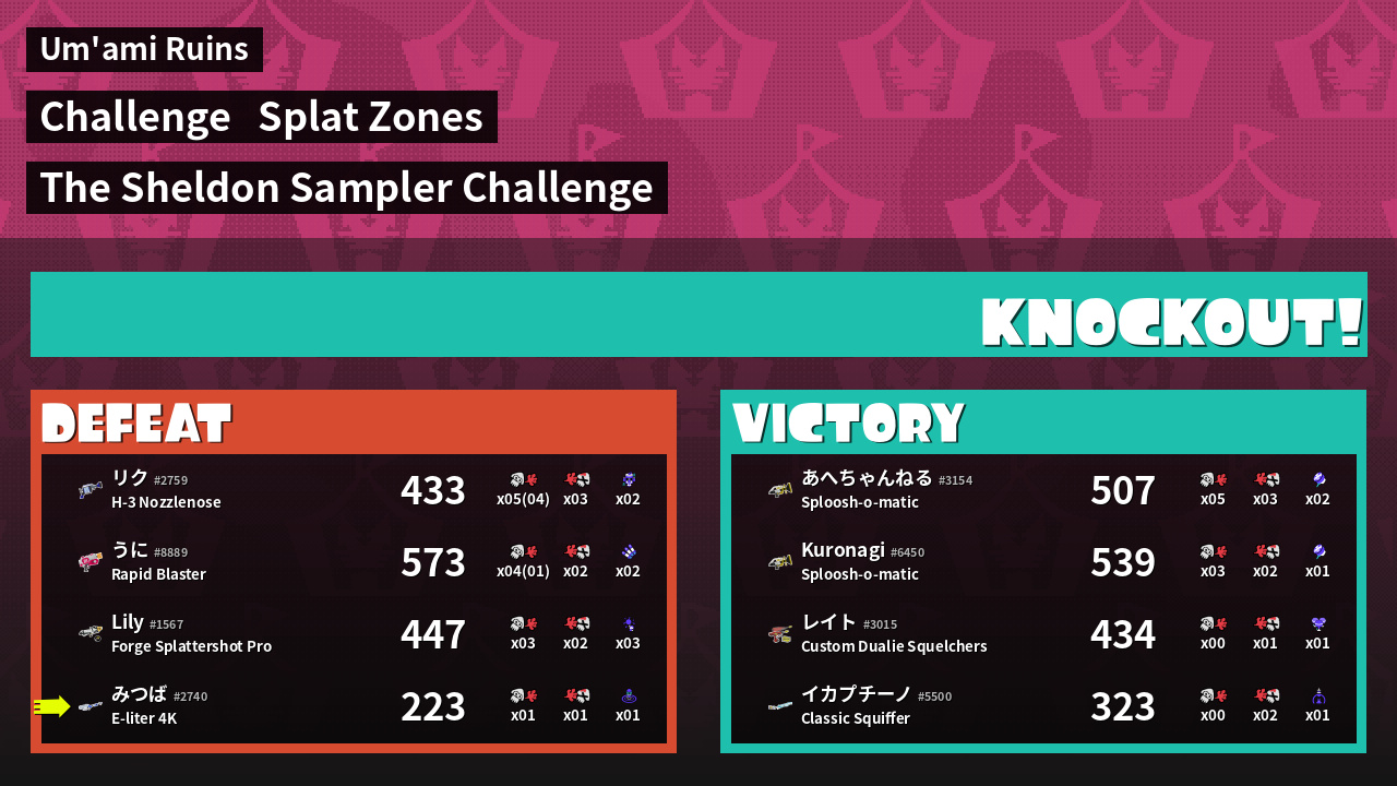 | Challenge | The Sheldon Sampler Challenge Make the most of random weapons! | ||
