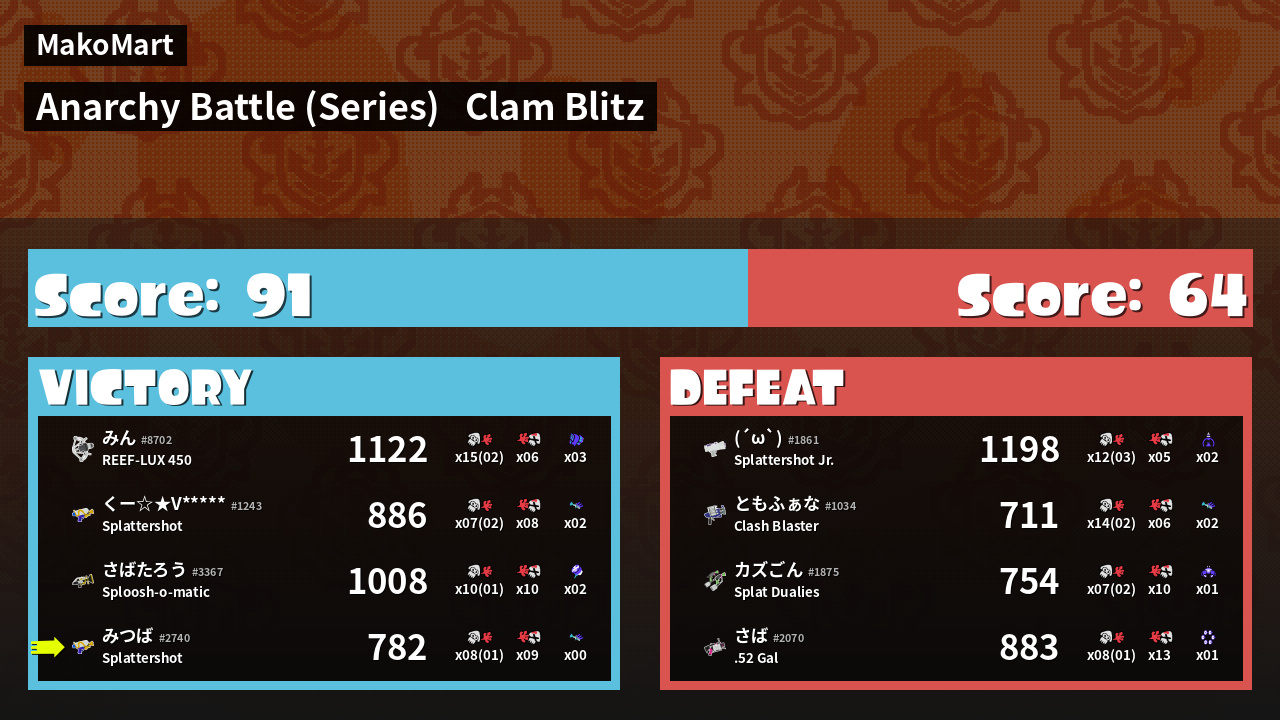 | Mode | Clam Blitz - Anarchy Battle (Series) | ||