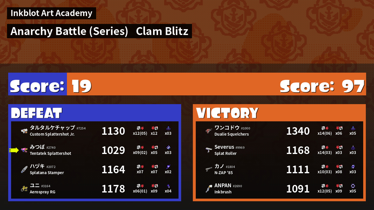 Name | Weapon | Inked | ![]() |
