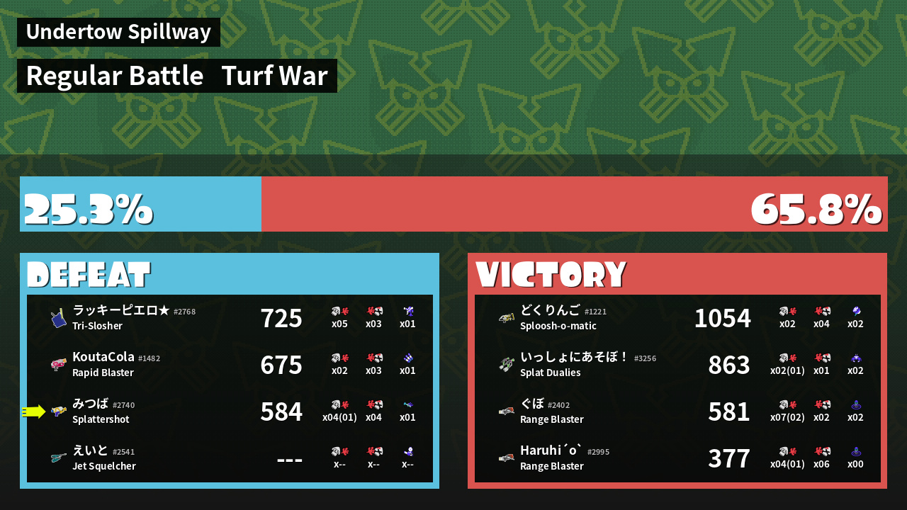 | Medals | #1 Splat Assister #1 Ground Traveler First Splat! | ||