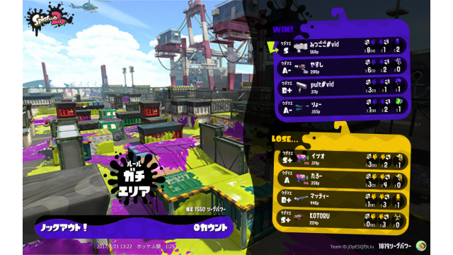 | Name | Weapon | Level | Rank | Inked | k+a/sp | k/d |
