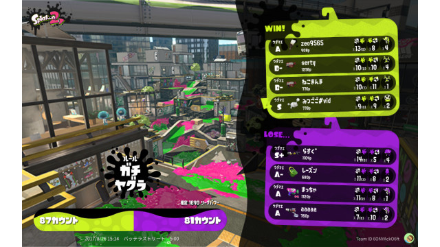 | Name | Weapon | Level | Rank | Inked | k+a/sp | k/d |
