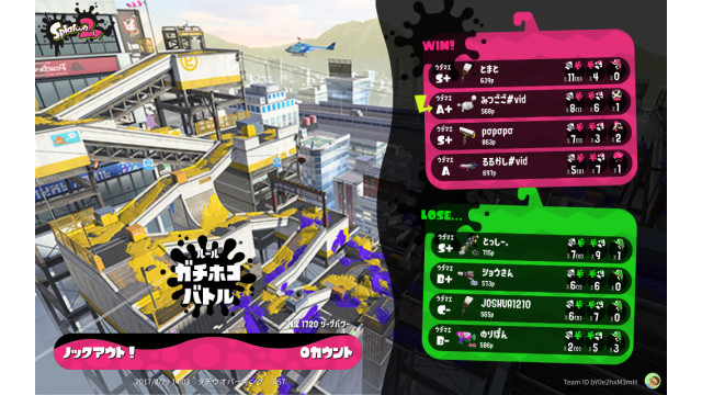 | Name | Weapon | Level | Rank | Inked | k+a/sp | k/d |