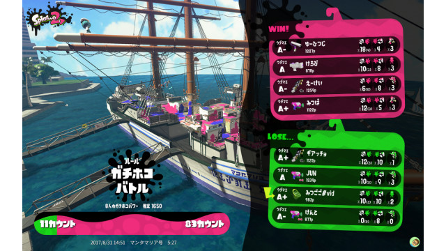 | Name | Weapon | Level | Rank | Inked | k+a/sp | k/d |