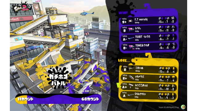 | Name | Weapon | Level | Rank | Inked | k+a/sp | k/d |