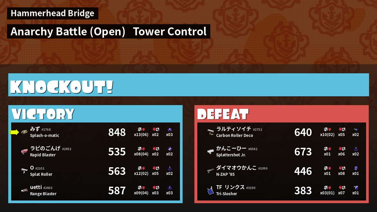 | Mode | Tower Control - Anarchy Battle (Open) | ||