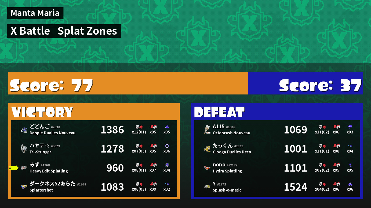 | Medals | #1 Splat Zone Guard #1 Tacticooler User #2 Overall Splatter | ||