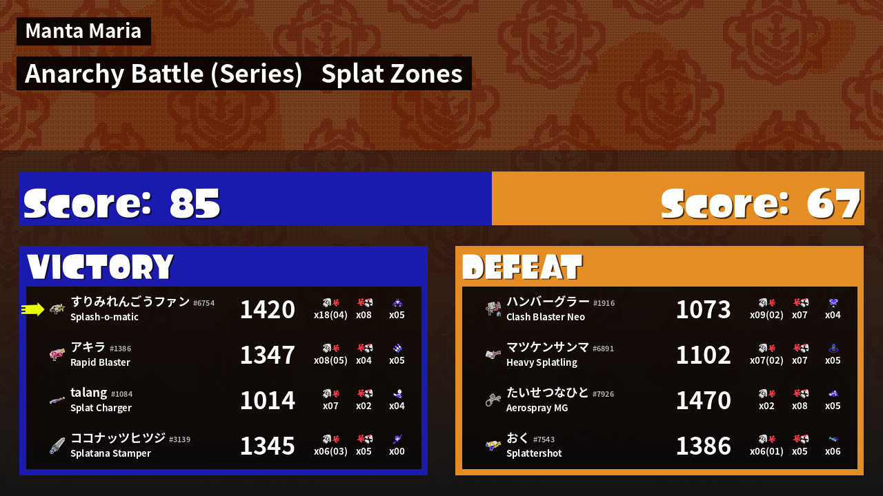 | Mode | Splat Zones - Anarchy Battle (Series) | ||