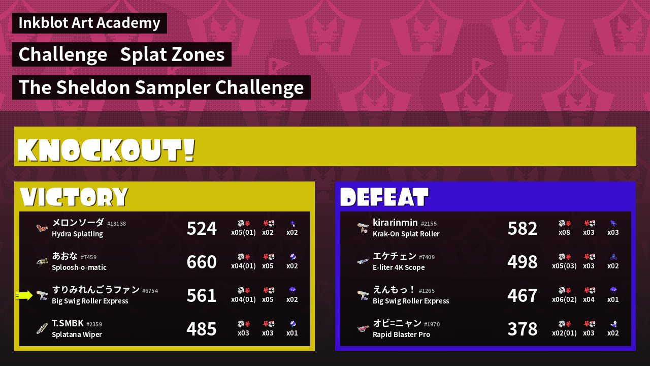 | Medals | #1 Popular Target #1 Splat Assister #1 Splat Zone Hero | ||