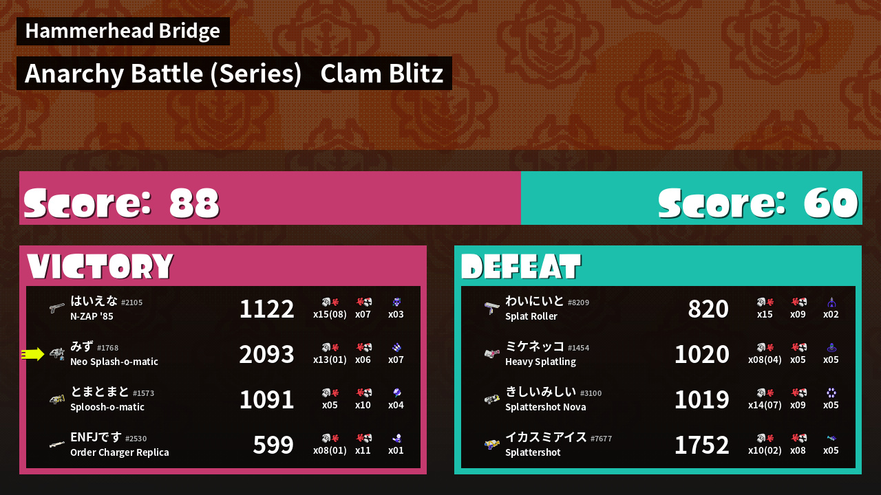 | ヴィジュアル系ナマケモノ  わいにいと #8209 |  Splat Roller                    | 820 | 15 + 0 | 9 | 1.67 |  2 | |