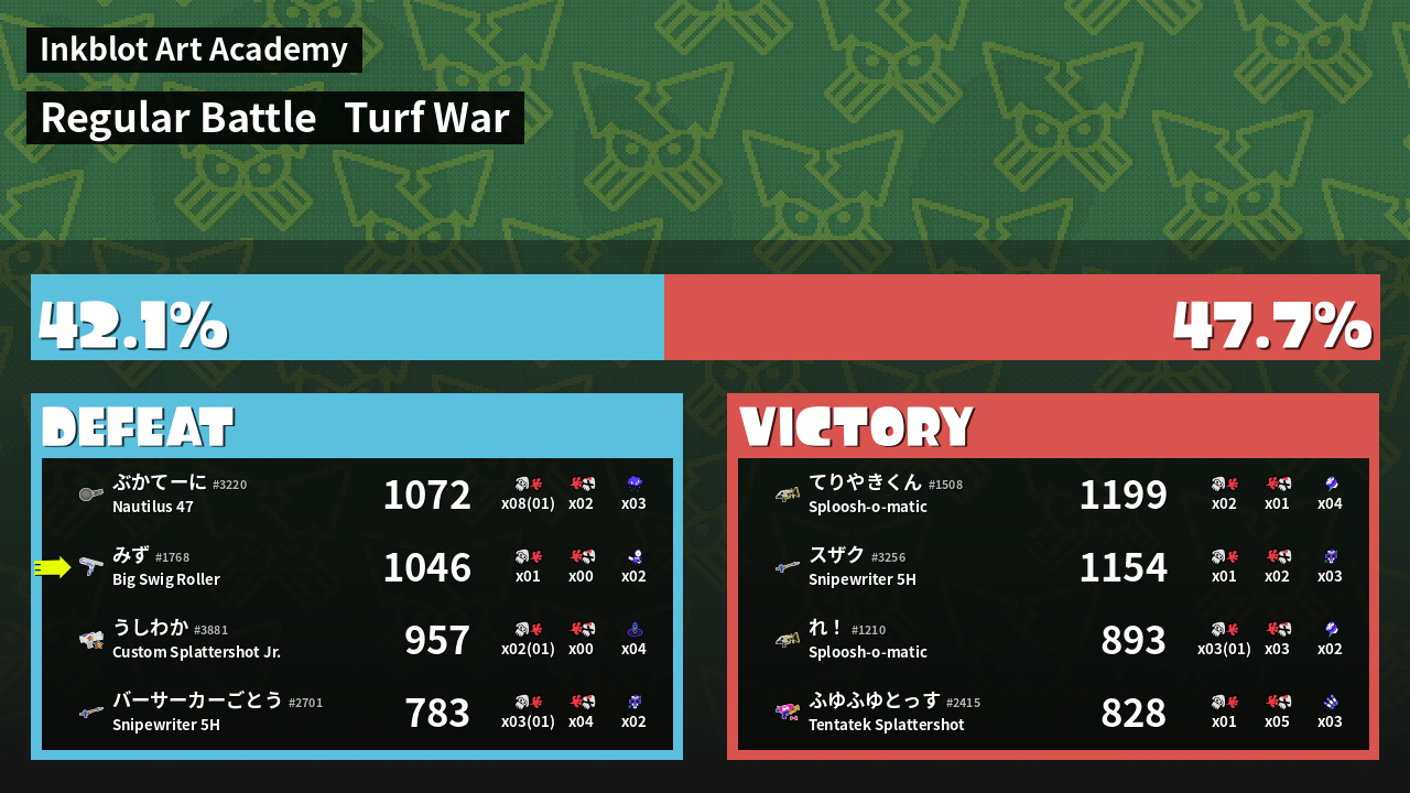| Mode | Turf War - Regular Battle | ||