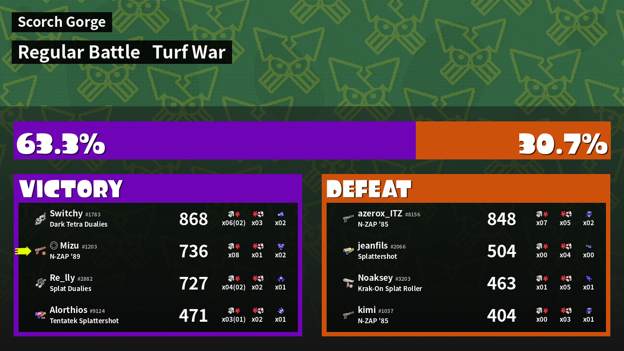 Kills / Deaths | 8 + 0 / 1 > Kill Ratio: 8.00 | ||