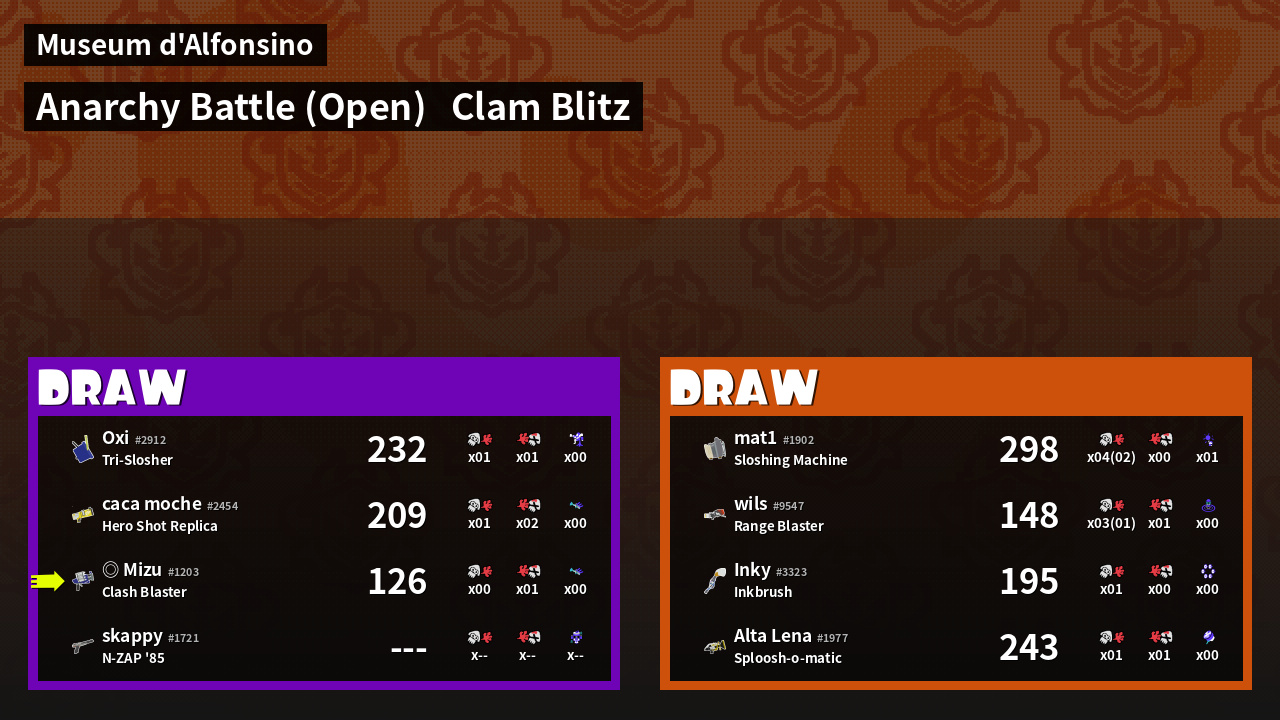 | Mode | Clam Blitz - Anarchy Battle (Open) | ||