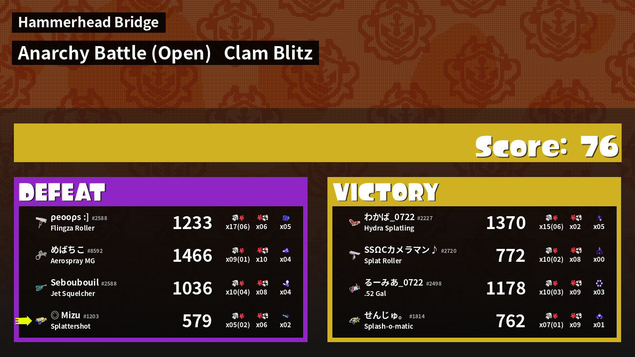 | Mode | Clam Blitz - Anarchy Battle (Open) | ||