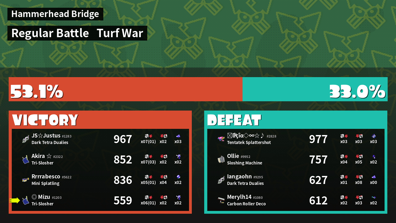 Kills / Deaths | 5 + 1 / 2 > Kill Ratio: 2.50 | ||