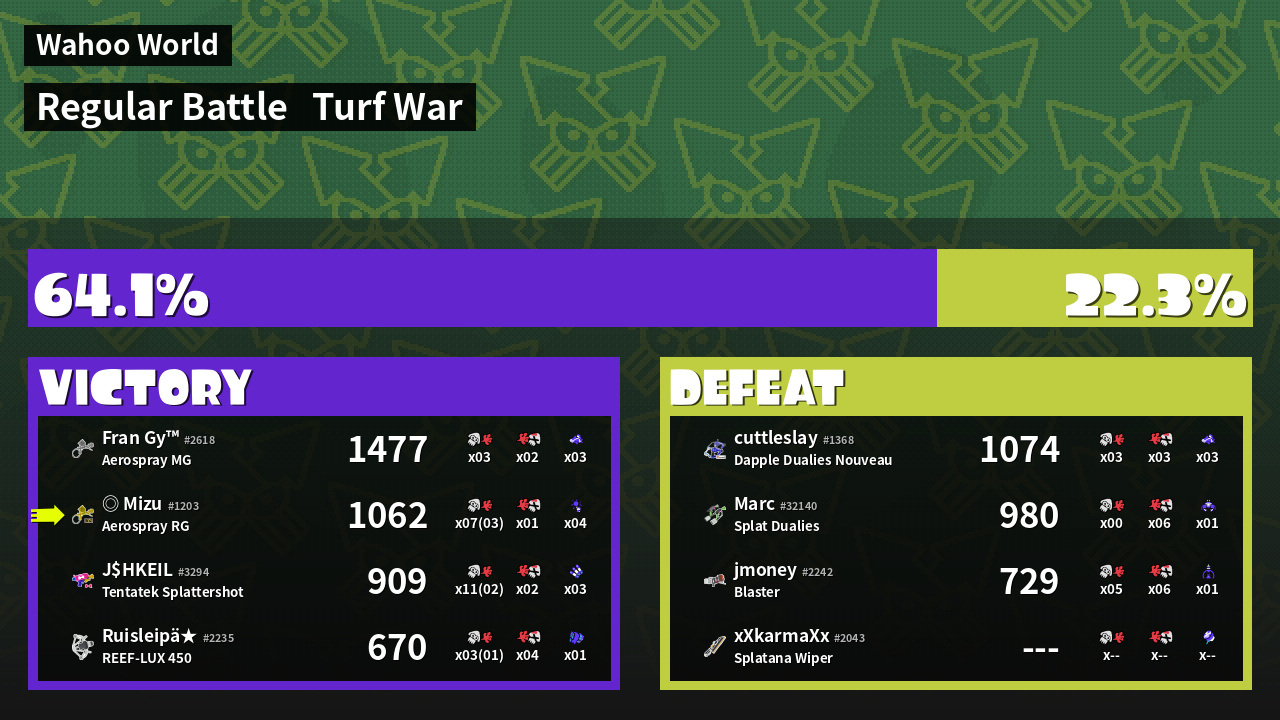 Results of Mizu's Battle