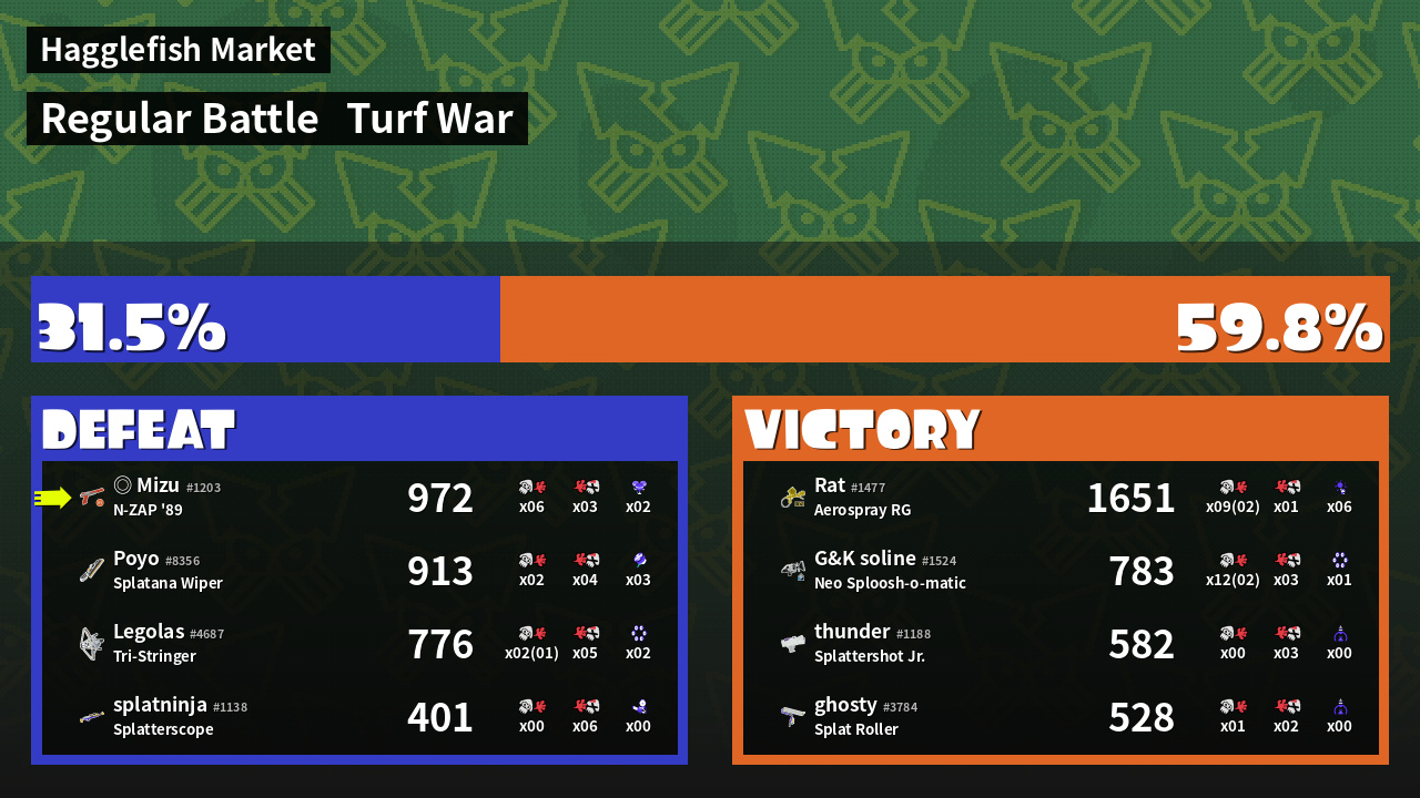 Kills / Deaths | 6 + 0 / 3 > Kill Ratio: 2.00 | ||