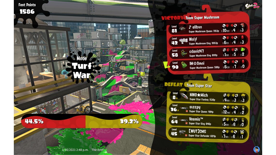 | Splatfest Title | Super Mushroom Queen → Super Mushroom Queen | ||||||||||||||||||||||||||||