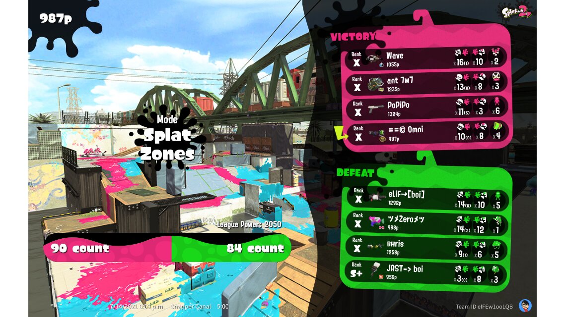 | Mode | Splat Zones - League Battle (Quad) | |||||||||||||||||||||||||||||||||||||||||||