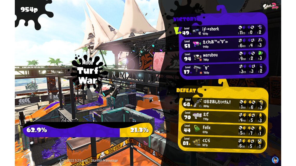 | Mode | Turf War - Regular Battle | |||||||||||||||||||||||||||||||