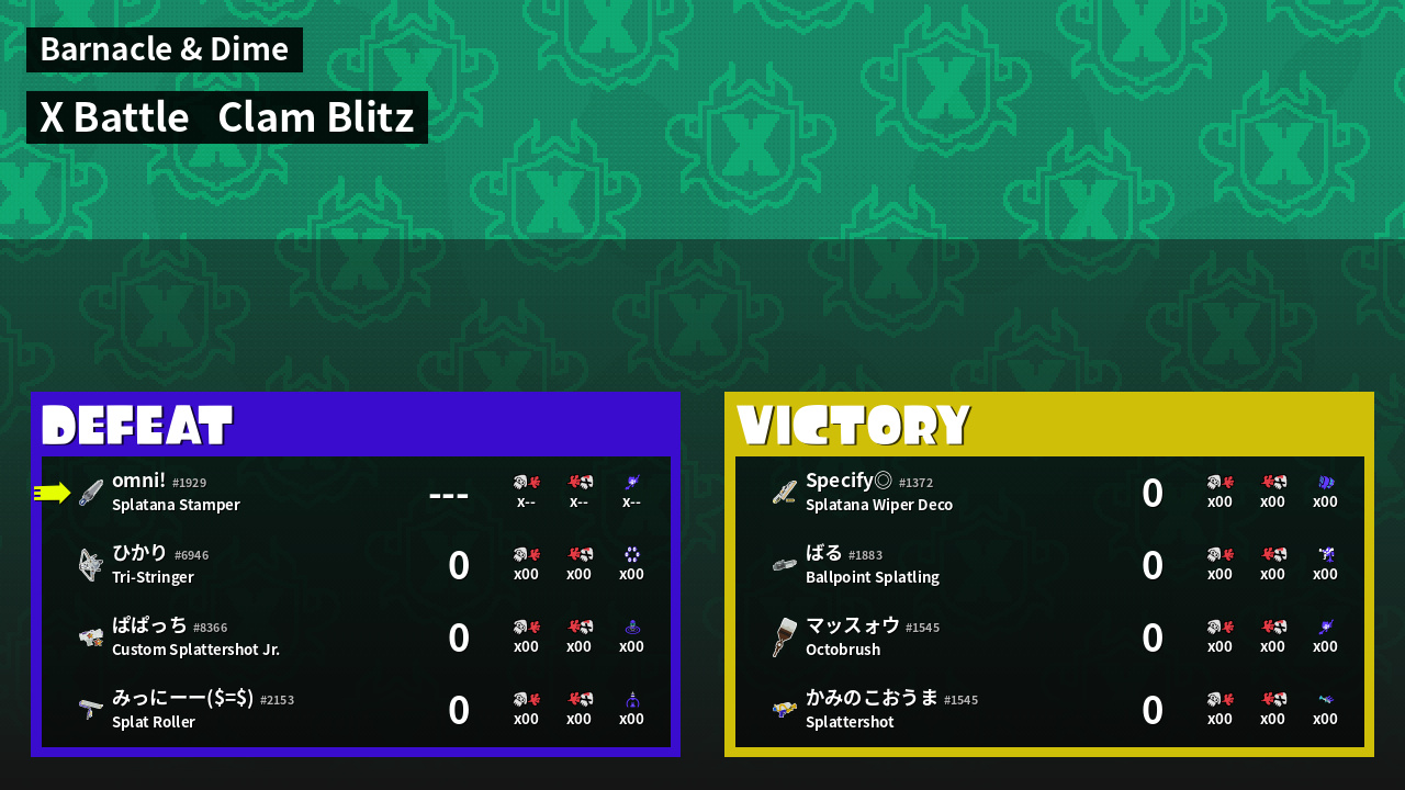 | Weapon | Splatana Stamper ( Burst Bomb / Zipcaster) | ||