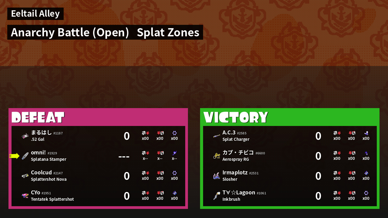 | Mode | Splat Zones - Anarchy Battle (Open) | ||