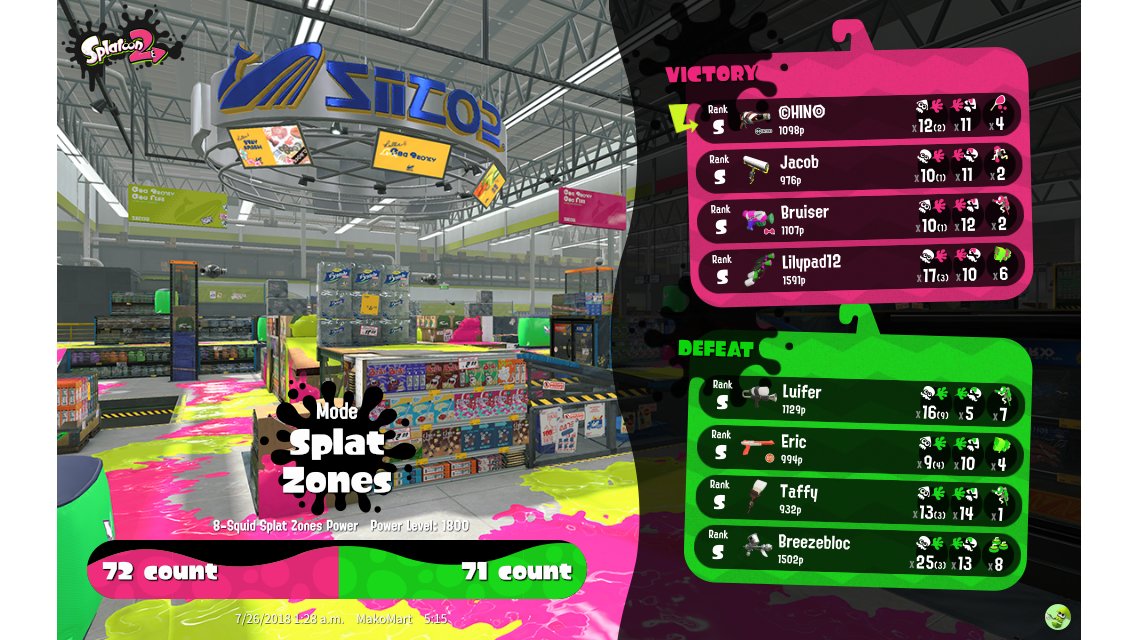 | Mode | Splat Zones - Ranked Battle | ||||||||||||||||||||||||||||||||||||||||