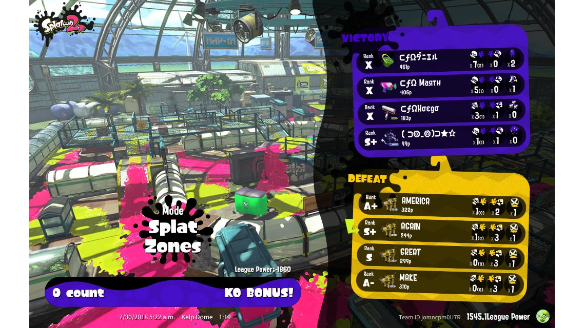 | Mode | Splat Zones - League Battle (Quad) | ||||||||||||||||||||||||||||||||||||||||||||||