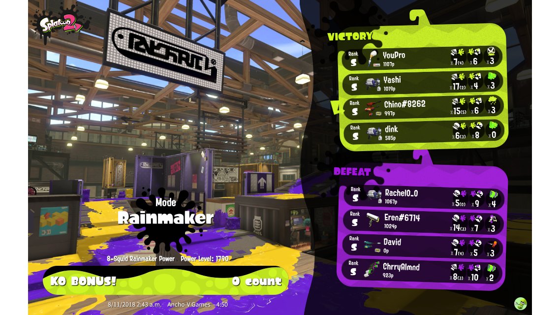 | Mode | Rainmaker - Ranked Battle | ||||||||||||||||||||||||||||||||||