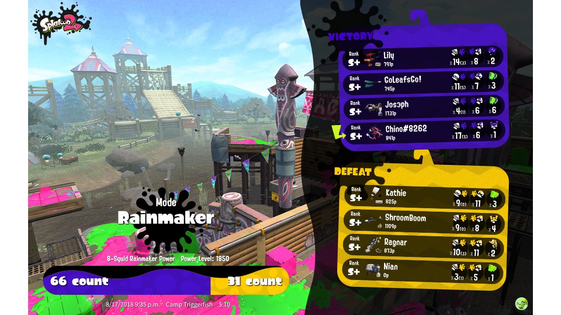 | SplatNet Battle # | 722 | ||||||||||||||||||||||||||||||||||