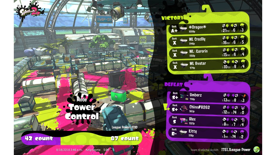 | Mode | Tower Control - League Battle (Quad) | ||||||||||||||||||||||||||||||||||