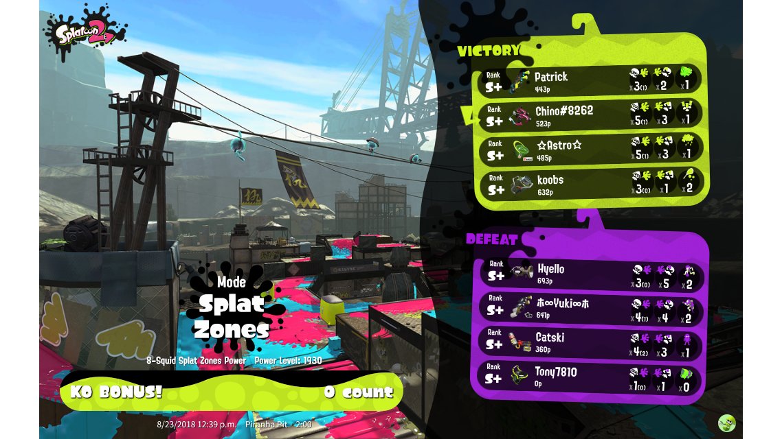| Mode | Splat Zones - Ranked Battle | ||||||||||||||||||||||||||||||||||