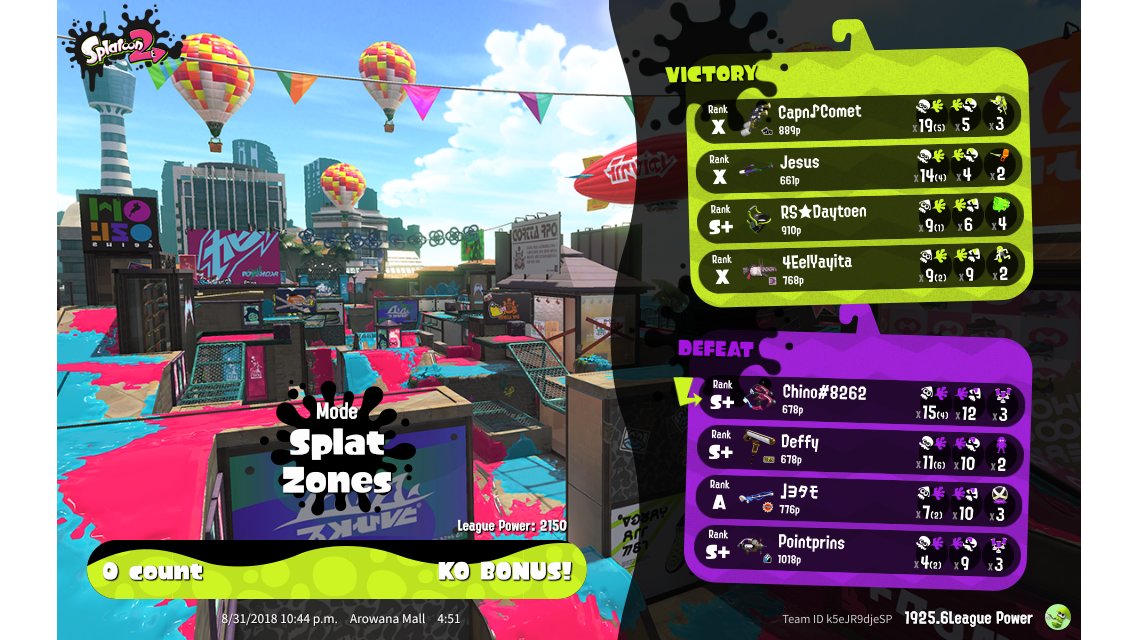| Mode | Splat Zones - League Battle (Quad) | ||||||||||||||||||||||||||||||||||
