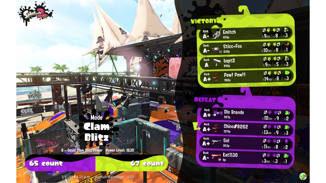 | Name | Weapon | Level | Rank | Inked | k+a/sp | k/d |
