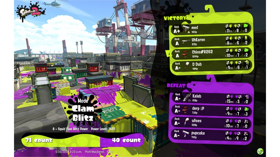 | Name | Weapon | Level | Rank | Inked | k+a/sp | k/d |