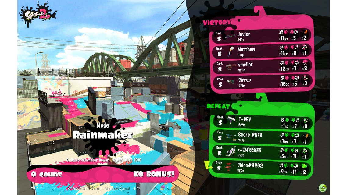 | Name | Weapon | Level | Rank | Inked | k+a/sp | k/d |